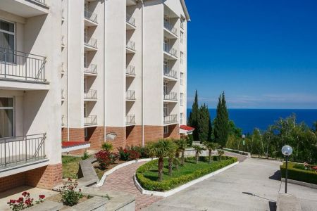 Самолётом до аэропорта г. Симферополя, далее от автостанция «Курортная» на рейсовом автобусе до автостанции поселка Мисхор, далее на такси до санатория.